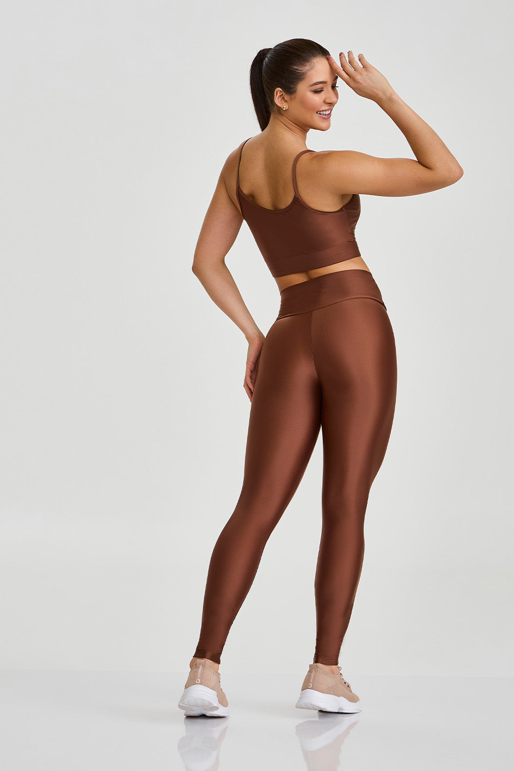 The High Support Top in elegant cappuccino brown is the ideal choice for high-intensity workouts and looks full of personality.