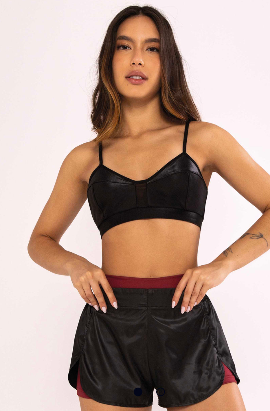 The most incredible piece to practice your favorite exercise! Offering great practicality and versatility, the 2-in-1 light shine shorts have several possible uses, and can be worn loosely over the faux leather shorts or worn separately. It is a great option to meet your daily needs with different looks. The loose shorts have a regular waistband gathered from the sides to the back and have a braid detail in the faux leather fabric that enhances the look of the piece. The sides are higher, helping with mobility during sports. Its fabric has a slight shine, giving the piece a sophisticated look, it is pleasant to the touch and dries quickly. The fitted shorts have a high waistband, without cutouts on the sides, providing more comfort during use. It was developed in fabric with a faux leather look and sophisticated shine. It is made of polyamide fabrics with elastane, offering great compression with high coverage.