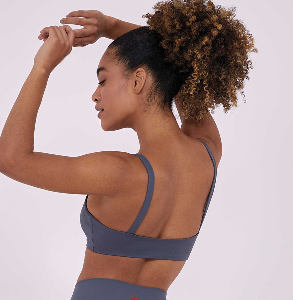 The hyper essential top has straps with built-in elastic that helps support the fit, making it ideal for those who prefer a more subtle strap than the average strap. It has a regular neckline, removable cups, a low-cut back that enhances the body and personalized brand details. It is made of soft, good compression fabrics that contribute to its performance and also has UV protection.